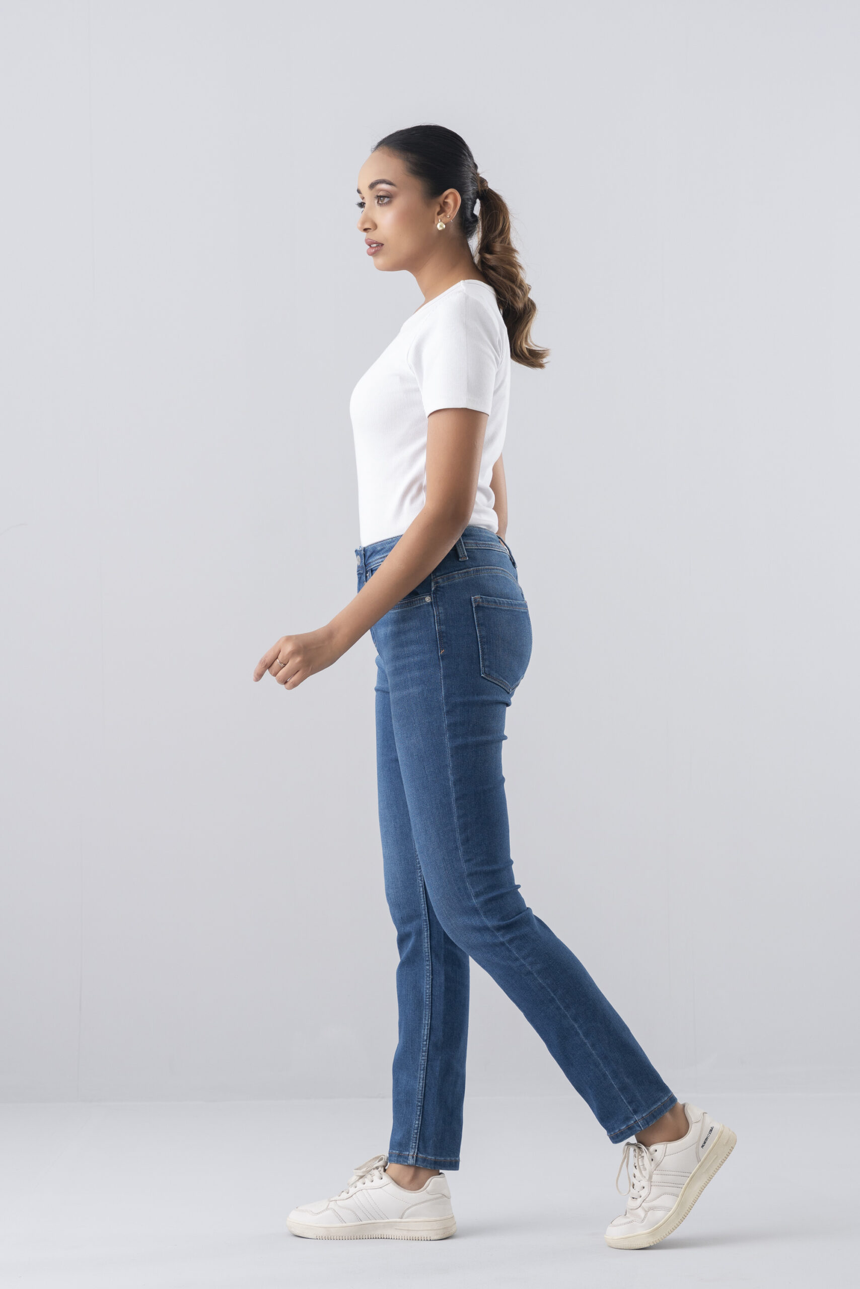 | Description | These Women’s Mid-Blue Skinny Jeans offer a classic, body-sculpting silhouette designed for a streamlined look from waist to ankle. Crafted from high-stretch denim with a versatile mid-indigo wash, they feature subtle fading and a high-rise waist for all-day comfort and support. | These Women’s Dark Indigo Skinny Jeans feature a sophisticated, deep-ink wash that offers a more polished and versatile look for your denim rotation. | Elevate your everyday look with these Vintage-Wash High-Rise Flare Jeans. Designed to elongate the silhouette, they feature a slim fit through the hip and thigh that breaks into a sophisticated flare | Essential black denim featuring a clean, structured cut and gold-tone hardware for a versatile, polished aesthetic. | Elevate your everyday style with these High-Rise Skinny Jeans, featuring a streamlined fit that contours from hip to ankle. | ||||||||||