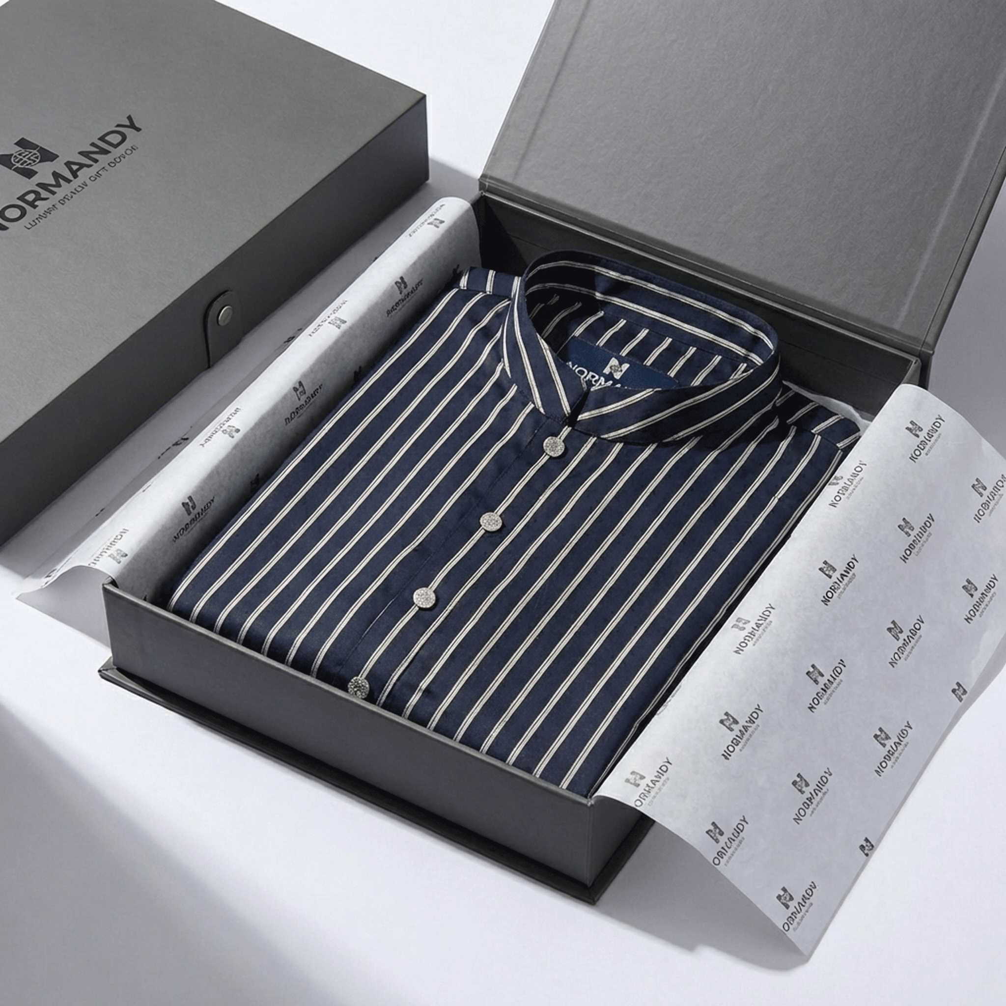 The Midnight Stripe Panjabi by Normandy Global blends timeless stripe detailing with contemporary tailoring. Crafted in a deep navy base, the clean ivory vertical stripes create a lengthening visual effect, enhancing the overall silhouette.