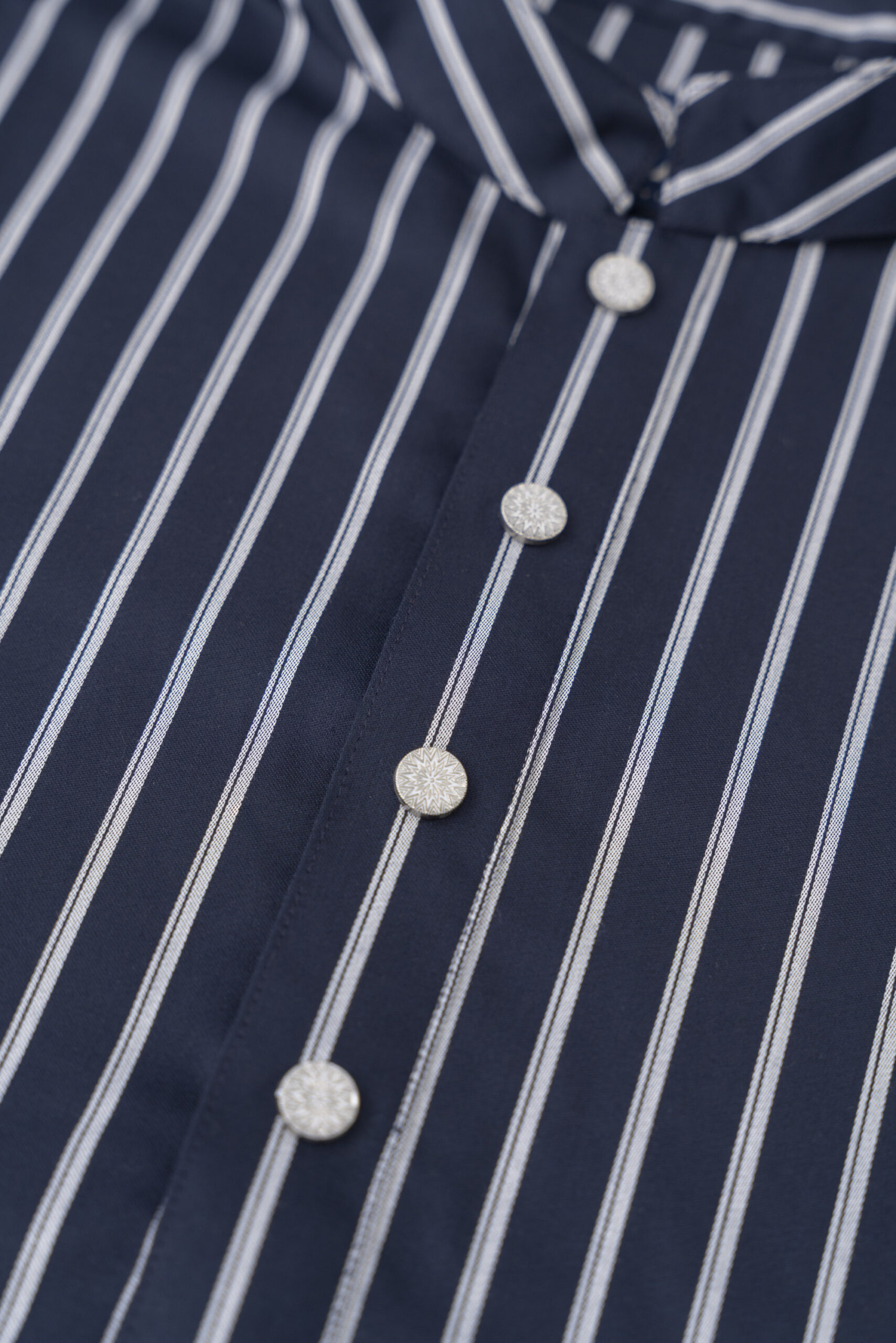 A refined navy Panjabi featuring elegant ivory vertical stripes and premium statement buttons. Designed for modern sophistication, this piece offers a sleek silhouette perfect for festive, formal, and evening occasions.