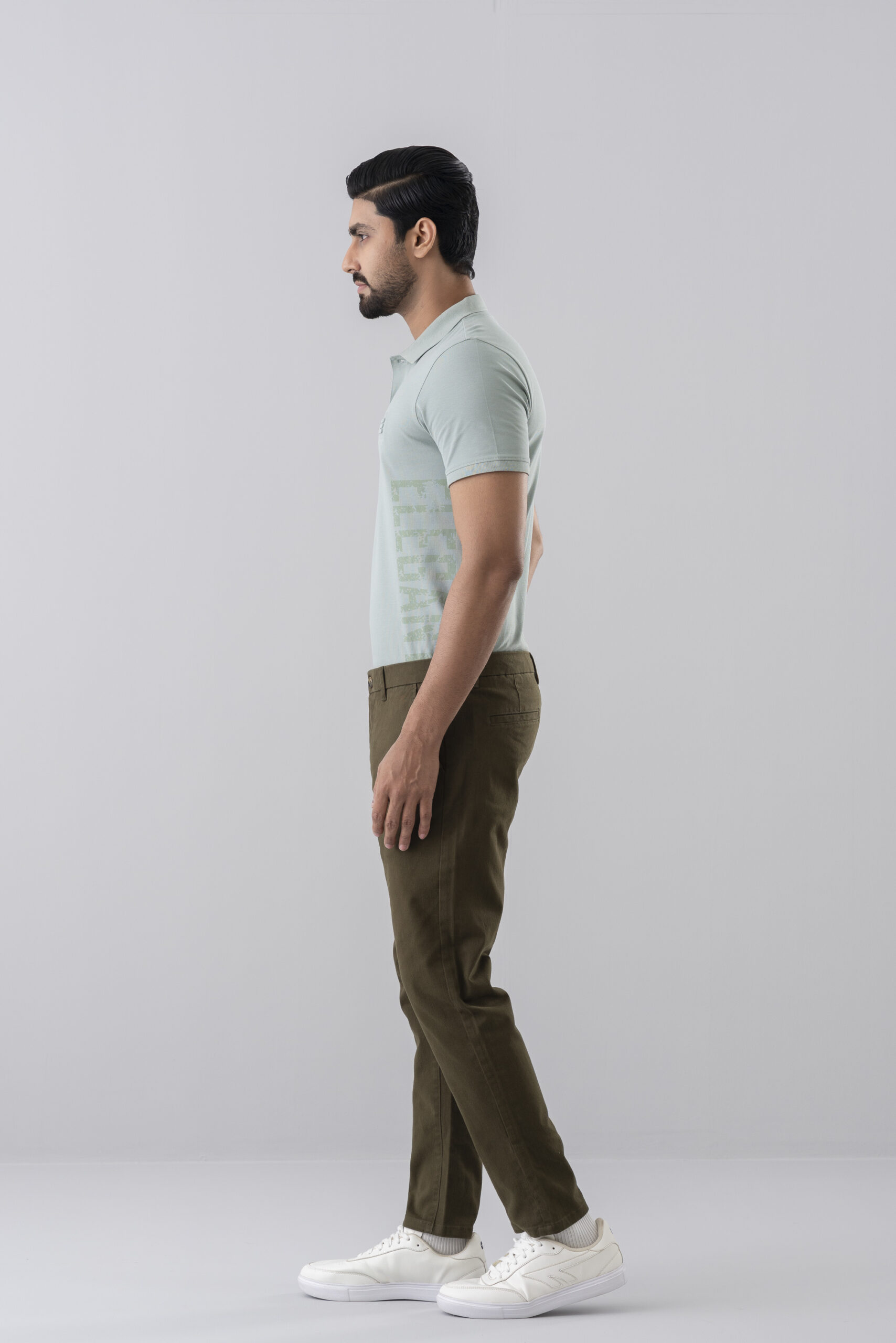 A modern slim-fit olive chino crafted from premium cotton twill. Designed for clean everyday styling, it delivers structured comfort with a refined smart-casual finish.